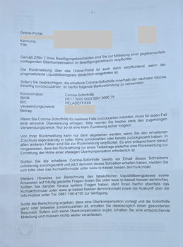 Von den meisten Einzelunternehmern und Personengesellschaften wurde die Soforthilfe aber bald wieder zurückgefordert. Die standardisierten Bewilligungsbescheide formulierten auf Seite 2 unter Nr.