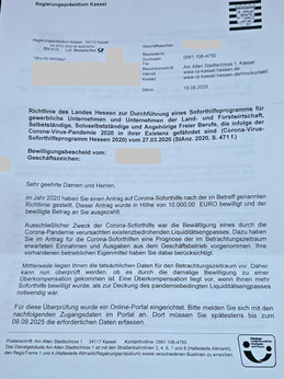 Nun hat das Land Hessen und mit ihm wahrscheinlich andere deutsche Bundesländer begonnen, auch von den kleinen GmbHs die Soforthilfe zurückzufordern. In einem Standardschreiben vom 19.08.25