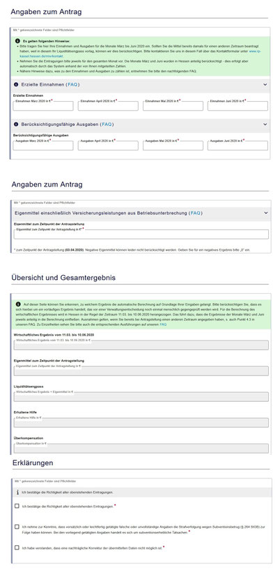 Auf der Grundlage der „Richtlinie des Landes Hessen zur Durchführung eines Soforthilfsprogramms für gewerbliche Unternehmen und Unternehmen der Land- und Forstwirtschaft, Selbstständige, Soloselbstständige und Angehörige Freier Berufe, die infolge der Corona-Virus-Pandemie 2020 in ihrer Existenz gefährdet sind - (Corona-Virus-Soforthilfsprogramm Hessen 2020) vom 23.03.2020“ wurde Kleinunternehmen eine unbürokratische Soforthilfe als Festbetrag gestaffelt nach der Zahl der Erwerbstätigen gewährt. Unternehmen mit bis zu 5 Mitarbeitern erhielten 10.000 Euro, mit bis zu 10 Mitarbeiter 20.000 Euro und Unternehmen mit bis zu 50 Mitarbeiter 30.000 Euro als Einmalzahlung für drei Monate, also für die Beschränkungen von Mitte März bis Mitte Juni. Nach einem einschränkungsarmen Sommer wurden ab November 2020 in einem komplizierteren Verfahren andere Hilfen gewährt. Eigentlich sollte es sich um einen „einmaligen nicht-rückzahlbaren Zuschuss“ handeln.